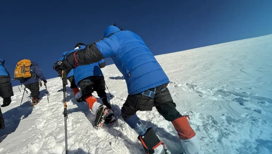 На следующем этапе подготовки ветераны под руководством горных гидов, протезистов и медиков совершили тренировочное восхождение. Они прошли акклиматизацию, освоили технику передвижения по снегу и скалам, обучились базовым навыкам выживания в горах. По результатам тренировочного восхождения 6 ветеранов СВО были отобраны для финального этапа.